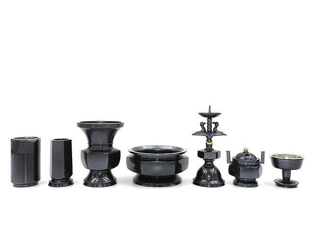 花浄土 3寸 七具足セット 藍錆色口金(樹脂塗装)