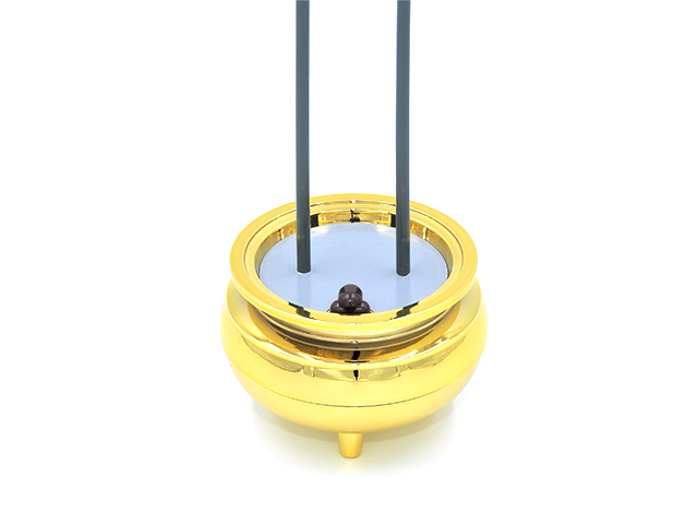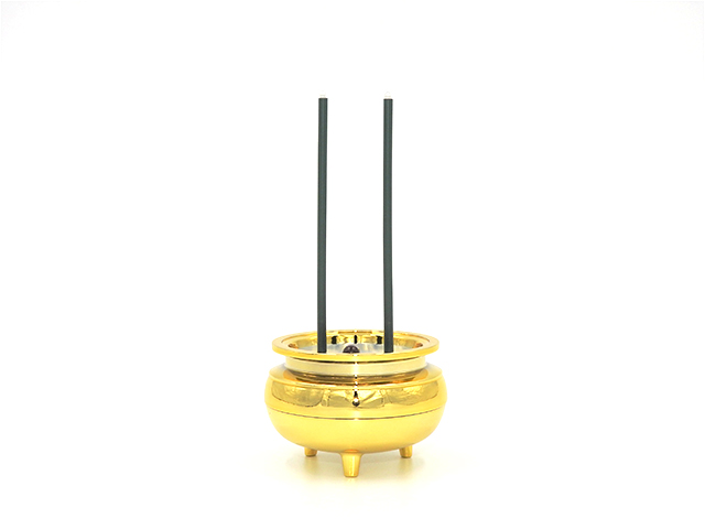 電池式のお線香です。香炉の灰入れ部前側にあるプッシュ式スイッチを軽く押すだけで、点灯、消灯できます。マッチ、ライター、配線も不要で倒れても安全です。 商品サイズ:直径約5.5cm×高さ11cm 本体重量:約25g(電池除く) 香炉の色:金 点灯時間:アルカリ電池使用で約100時間連続点灯可能(1日15分で約1年間) 光源:赤色LED(高輝度LED採用) 使用電池:単5形乾電池×2個(テスト用乾電池2個付)