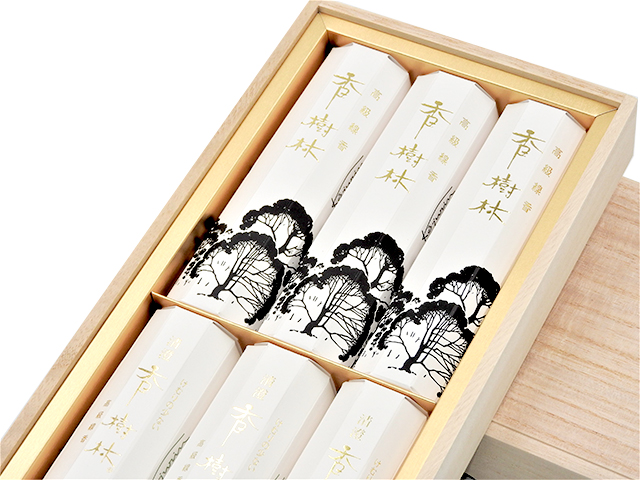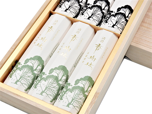 文化元年創業の玉初堂のお線香「香樹林」と「清澄香樹林」を詰合せたご進物用(桐箱)になります。香樹林は、インド・カルナタカ産の香木「白檀」をふんだんに配合し、その薫りを余すところなく生かすよう、秘伝の調香法を駆使して創りあげたお線香です。甘く爽やかな薫り、清浄な移り香はどなたにもお気に召すものと存じます。