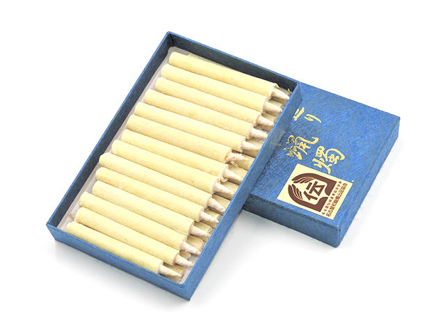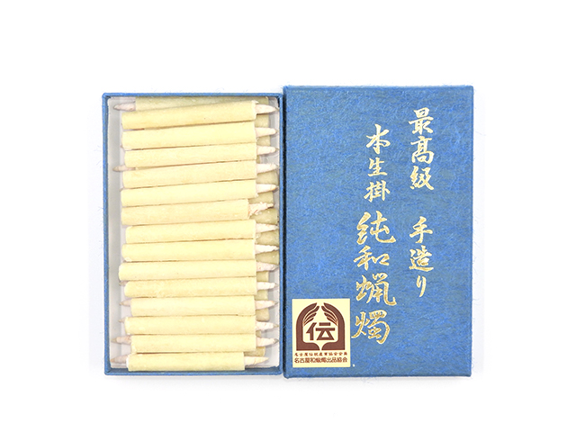 愛知県や名古屋市などから、近年伝統産業として認められた本生掛純和蝋燭です。原料は、すべて国産の天然ハゼの実で出来た木蝋を使用し、芯はい草の中身、長灯芯と和紙で出来ております。鉱物(石油系)、動物の原料は全く入っておりませんので清浄で、油煙は極めて少なく、環境に優しい蝋録です。蝋燭の断面は何度も繰り返し蝋をつけて太くしていく為、木の年輪のようになっております。