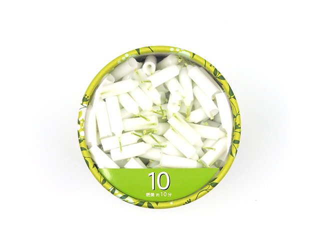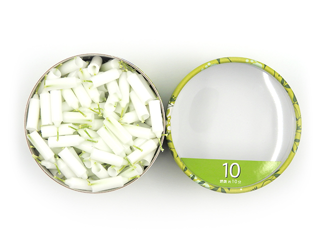 火を消した後のにおいが気にならず、スス(油煙)もほとんど出ません。ススが出にくい植物性原料(アブラヤシ果実から抽出したパーム油)で作られた環境にやさしいローソクです。芯糸のグリーンは、クリーン&エコのしるしを表しています。夏場の曲がりや油のにじみが少なく、冬場の再点火もかんたん(カメヤマ社比)です。 商品サイズ:直径9.7cm×高さ9.6cm 内容量:約250g(約300本入) ろうそくの長さ:2.6cm(直径7.5mm) 燃焼時間:約10分 ろうそくの形状:棒型 メーカー:カメヤマ