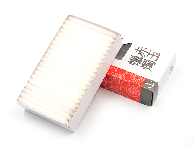 アカダマ錨ローソク・赤玉錨薫香舗の洋ローソク1号(燃焼時間:約60分)です。純度の高いパラフィンを使用し、製法にも独自の研究を重ねてきた洋ローソクで、明治43年イギリスのライジングサン(現:シェル石油)と洋ローソク協力工場として名古屋市(中川区)に創業し、『赤玉錨ローソク』が誕生して以来、愛知県を中心に広く使われております。