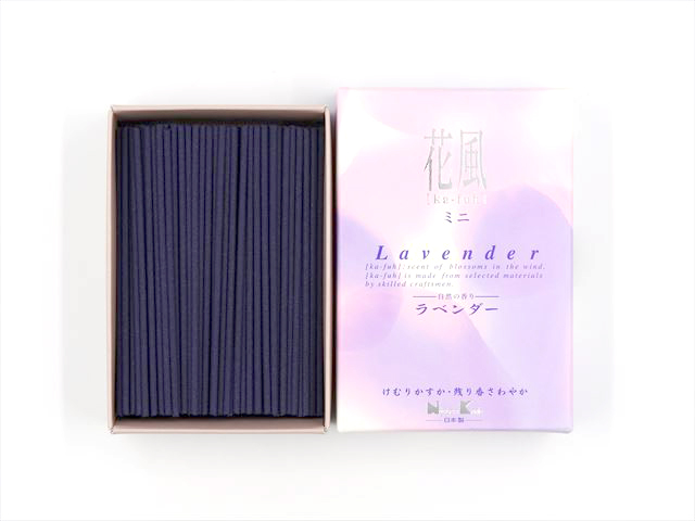 花風ラベンダーのミニ寸線香です。夏空のもとアルプスの山麓一面に広がる、最も芳香がすばらしいといわれる開花直前のラベンダーそのものの香りです。天然のラベンダーエッセンスをふんだんに使い、さらにフレッシュなハーバル感を表現するために、様々な天然ハーブエッセンスを加え、本物のピュアな香りを再現しました。かすかなけむりで、マイルドな香りがしばし心に残ります。環境に優しいナチュラルなお線香です。
