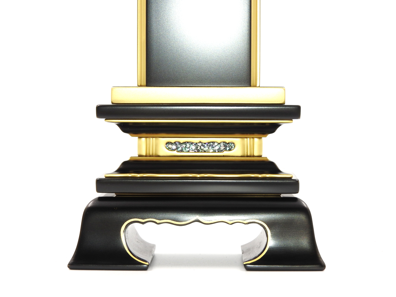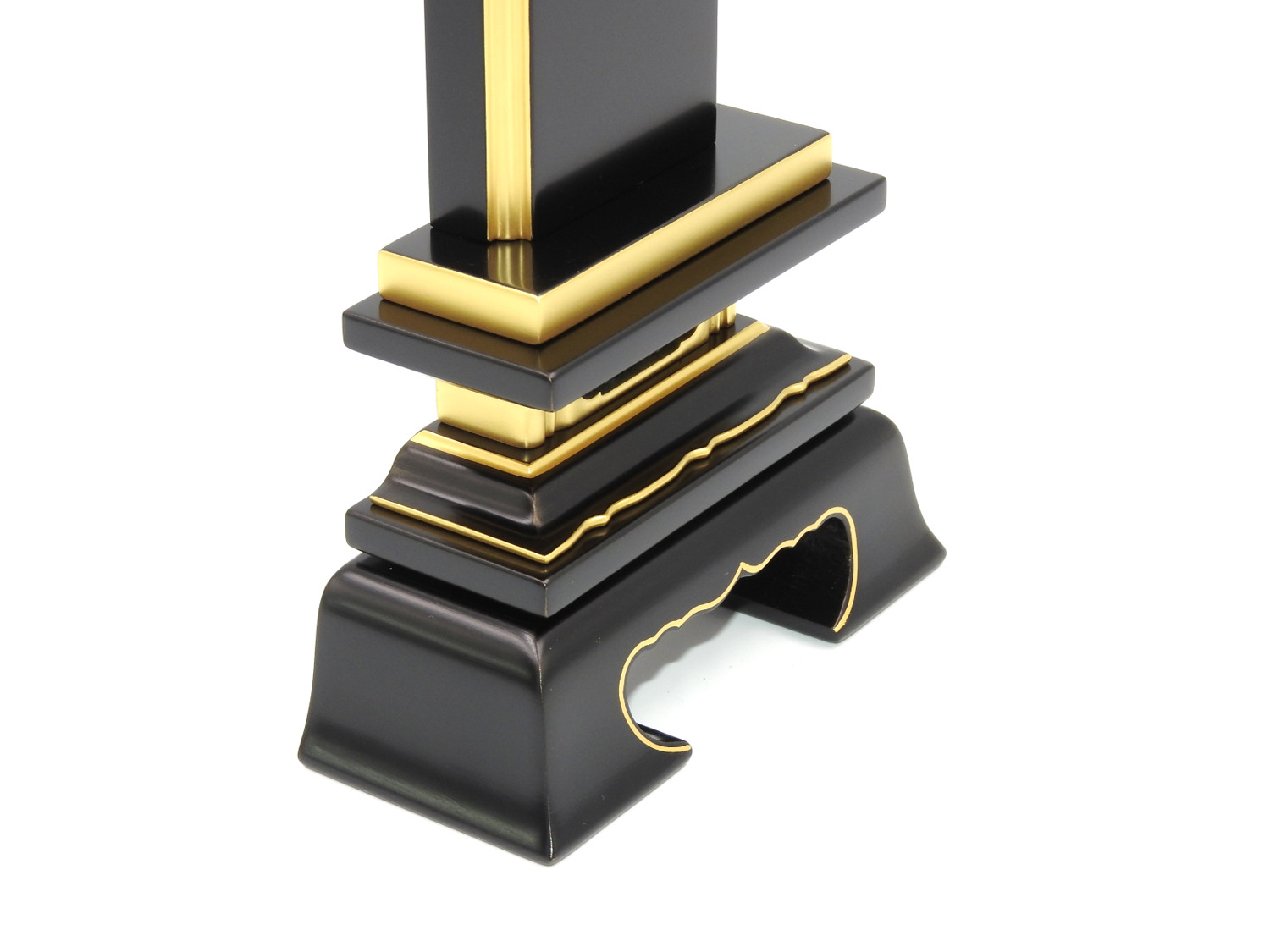 一般的なお位牌です。頭部がくし型で、脚部が格狭間(こうざま)にくりぬかれた、シンプルな形のお位牌です。約500年程前の室町時代に始まったと言われている会津塗りのお位牌で、伝統の技を受け継いだ職人が、心を込めて仕上げています。