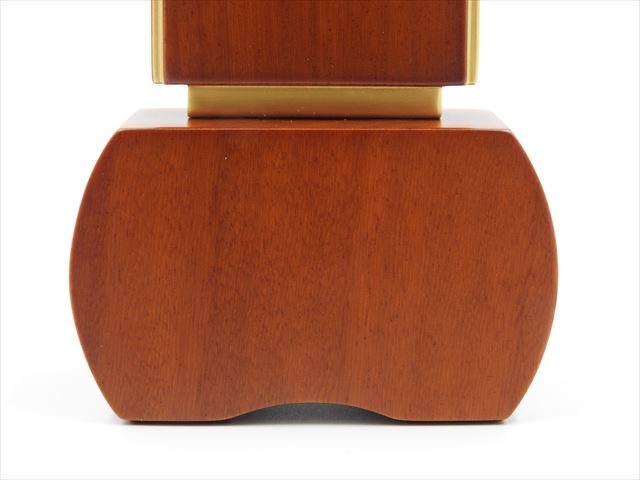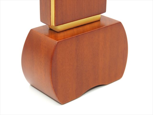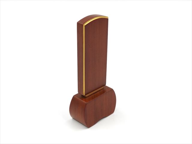 お位牌の形が持つ伝統的な美しさを極力シンプルな直線と曲線で表現し、札板の周囲を細い金粉で縁取ることでさりげない優しさと気品が漂う、2012年にグッドデザイン賞を受賞したモダン位牌です。花梨材・パオロッサ材を用いた質感のある木目と落ち着いたブラウンのカラーです。