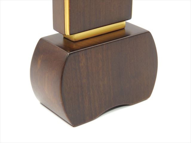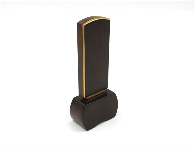 お位牌の形が持つ伝統的な美しさを極力シンプルな直線と曲線で表現し、札板の周囲を細い金粉で縁取ることでさりげない優しさと気品が漂う、2012年にグッドデザイン賞を受賞したモダン位牌です。花梨材・パオロッサ材を用いた質感のある木目と落ち着いたダークグリーンのカラーです。