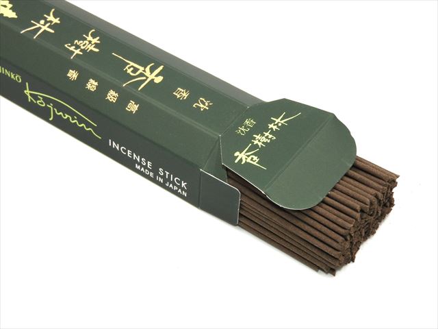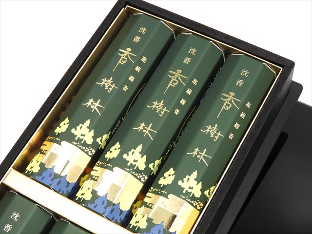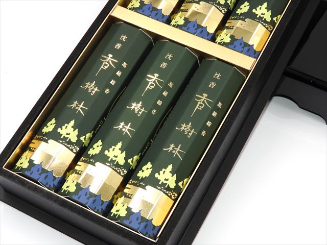 文化元年創業の玉初堂のお線香「沈香香樹林」のご進物用(塗箱)になります。沈香香樹林は、東南アジアのみで産出する貴重な香木「沈水香木」とインド産の香木「白檀」、ベトナムの「桂皮」などの天然漢方香料をそれぞれの特質を十分生かしながら配合されたお線香です。その芳香は爽やかさと、ひときわまろやかな甘味を持ち、静寂で落ち着きのある雰囲気を存分にお楽しみいただけます。