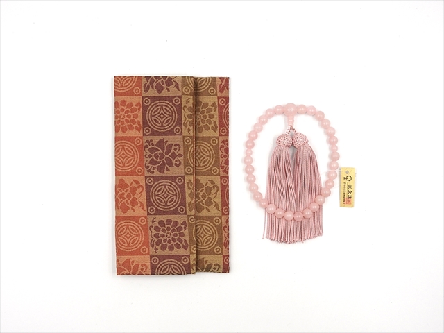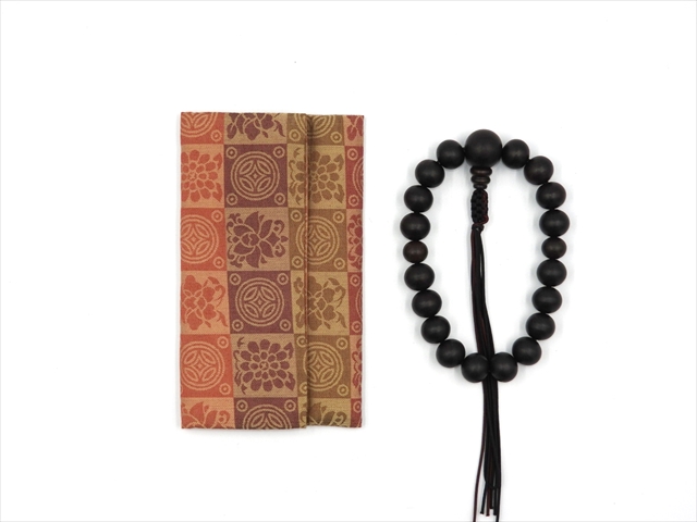 綿100%の生地のお珠数入れになります。古代中国から伝来した文様を日本の心で愛用し受け継がれた意匠美、「名物裂」それを現代感覚で織り上げております。二つ折りで、留め具はございません。 男性用の珠数(18玉サイズ、20玉サイズ、22玉サイズ)でも問題なく納まります。 *写真の珠数は商品に含まれません。 また、生地の裁断箇所により、商品一つ一つの柄の出方が異なる場合がありますのでご了承ください。 商品サイズ:17cm×9.5cm(広げた状態:17cm×17cm) 素材:綿