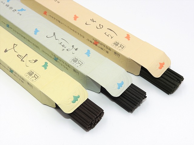 かすみは、白檀をベースに高級漢薬香料を加え、ほのかな苦みを引き立たせた香りのお線香です。