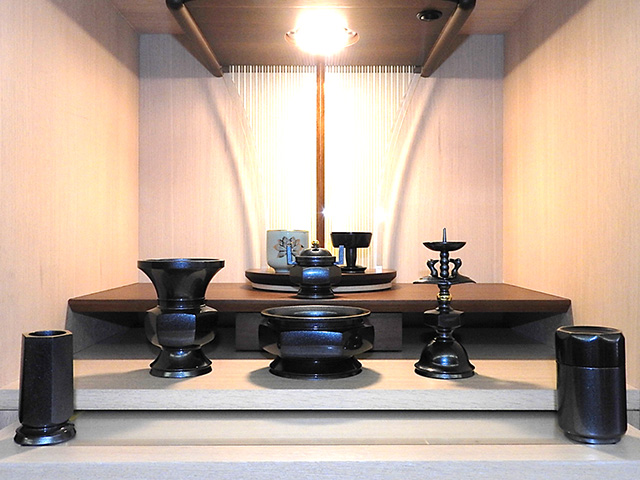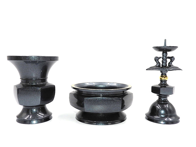 花浄土 3寸 七具足セット 藍錆色口金(樹脂塗装)