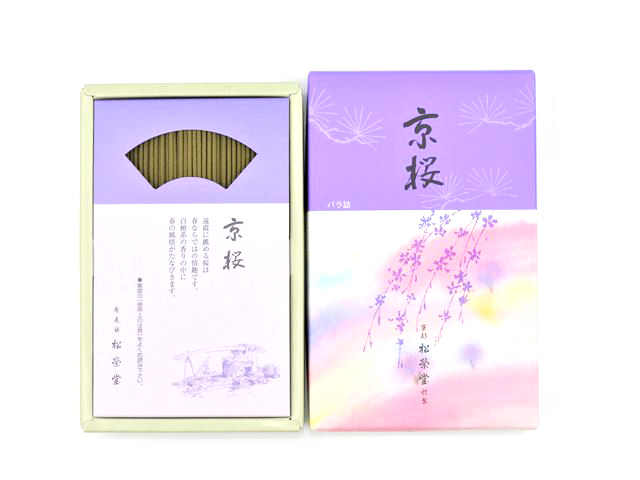 白檀系の香りの中に、春ならではの桜の風情がたなびくような感じを思わせるお線香です。けむり:ふつう 商品サイズ:15.5cm×10cm×3cm 内容量:約490本 お線香の長さ:約13.5cm 燃焼時間:約30分 形状:短寸バラ詰お線香 メーカー:松栄堂