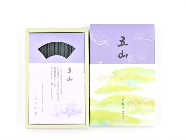 精霊を炎と共に送る京のお盆行事「五山送り火」にちなみ、最高級白檀をベースにしたまろやかで深みのある香りに調合されたお線香です。けむり:ふつう 商品サイズ:15.5cm×10cm×3cm 内容量:約490本 お線香の長さ:約13.5cm 燃焼時間:約30分 形状:短寸バラ詰お線香 メーカー:松栄堂