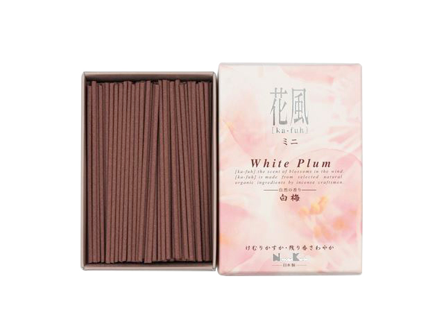花風白梅のミニ寸線香です。寒風の中、わずかな春のきざしを敏感に感じ、その花弁いっぱいに芳香が満ちるまで時を待つ白梅そのものの香りです。春の野に咲く白梅の透明感をホワイトフローラルの上品な香りに仕上げ、本物のピュアな香りを再現しました。環境に優しいナチュラルなお線香です。 けむり:かなり少ない 商品サイズ:73mm×50mm×50mm 内容量:約75g お線香の長さ:約7cm 燃焼時間:約10分(立てた場合) 形状:短寸バラ詰お線香 メーカー:日本香堂